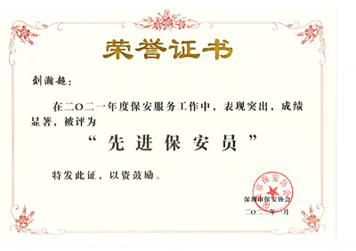 榮獲2017-2023年度深圳市公安局優(yōu)秀保安公司,深圳市保安協(xié)會(huì)常務(wù)理事單位(十大常務(wù)理事單位之一)
