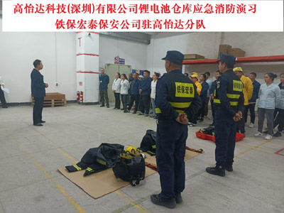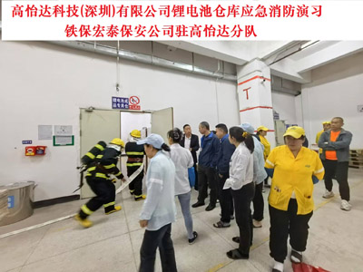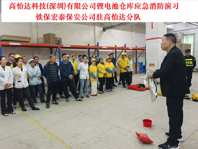 2024年11月28日高怡達科技(深圳)有限公司鋰電池倉庫應(yīng)急消防演習(xí) ,鐵保宏泰保安服務(wù)公司駐高怡達分隊。高怡達科技(深圳)有限公司成立于2004年11月05日,注冊地位于深圳市龍崗區(qū)橫崗街道六約金塘工業(yè)區(qū)勤富路30號B、C棟,法定代表人為林尤澳。經(jīng)營范圍包括無。^生產(chǎn)經(jīng)營各款電源供應(yīng)器、變壓器、馬達組件、電源插頭、線圈、電源組件、插頭電源線、穩(wěn)壓電源、紫外光牙刷頭消毒器、LED燈板、牙刷玻璃杯、機器人、自動化設(shè)備、機械及機電設(shè)備、制造管理信息化系統(tǒng)。上述產(chǎn)品的研發(fā)設(shè)計與技術(shù)服務(wù)。