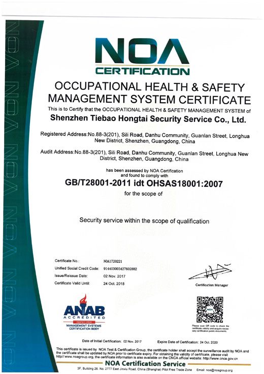 認(rèn)證范圍:資質(zhì)范圍內(nèi)保安服務(wù)。
