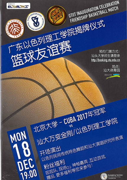 廣東以色列理工學(xué)院揭牌儀式籃球友誼賽在汕頭大學(xué)體院館開(kāi)賽。我司派駐了特保人員60人參加了安全護(hù)衛(wèi)工作。