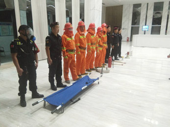 2018年10月8日晚20:30時(shí)深圳市龍華區(qū)安監(jiān)執(zhí)法部門突然到達(dá)我司駐深圳市港之龍實(shí)業(yè)有限公司客戶一樓大堂實(shí)施了消防檢查和消防保安隊(duì)?wèi)?yīng)急測(cè)試工作。我司當(dāng)班保安人員10人在保安姚軍主管的帶領(lǐng)下認(rèn)真、高速、規(guī)范的完成了各項(xiàng)應(yīng)急測(cè)試和考核。得到科安監(jiān)部門和客戶的高度認(rèn)可。