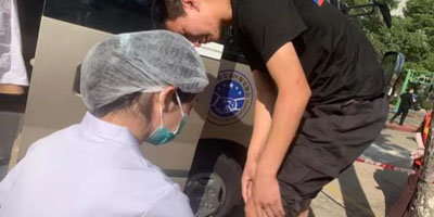 在兩天的競賽中,為了集體榮譽(yù),參賽隊(duì)員你爭我趕奮勇拼搏,先后有深圳市慧江保安服務(wù)有限公司、深圳市機(jī)場保安服務(wù)有限公司的保安員在200米賽跑和接力賽中,不慎摔倒,造成臉部、腿部受傷,守護(hù)在賽場旁邊的流動(dòng)體檢車醫(yī)護(hù)人員,迅速拎著急救箱跑到受傷隊(duì)員身邊,認(rèn)真仔細(xì)的對傷口進(jìn)行碘酒消毒和醫(yī)療創(chuàng)傷包扎。深圳市福田保安服務(wù)有限公司的保安員腿部肌肉拉傷并伴有低血糖頭暈,醫(yī)護(hù)人員聞?dòng)嵑罅⒓磳⑹軅?duì)員攙扶到流動(dòng)體檢車病床上,一方面為其補(bǔ)充葡萄糖,一方面用活絡(luò)油為其按摩腿部,經(jīng)過十多分鐘的治療,極大的緩解了受傷隊(duì)員的病痛。受傷隊(duì)員感動(dòng)的向醫(yī)護(hù)人員莊重敬禮致謝后與陪伴同事離去。中午時(shí)分氣溫升高,深圳市龍華保安服務(wù)有限公司的個(gè)別保安員頭暈有中暑的跡象,醫(yī)護(hù)人員及時(shí)請他們到體檢車上休息,并用風(fēng)油精為他們按摩太陽穴和刮痧,同時(shí),還給個(gè)別低血糖的隊(duì)員及時(shí)服用了葡萄糖等等,參賽隊(duì)員經(jīng)過簡單的治療后,又投身到緊張的比賽中去。這些看起來微不足道的工作,但保障了賽事工作的順利進(jìn)行。